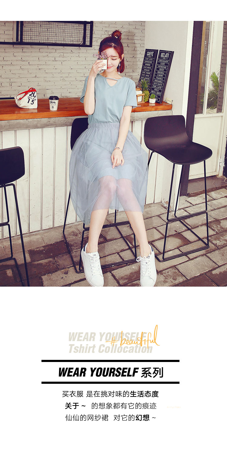 新款夏季假两件短袖连衣裙中长款欧根纱休闲裙子韩国