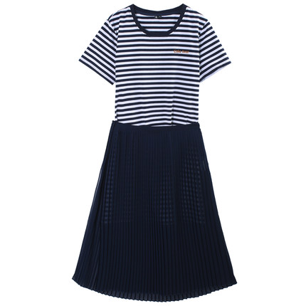 新款夏季假两件短袖连衣裙中长款欧根纱休闲裙子韩国
